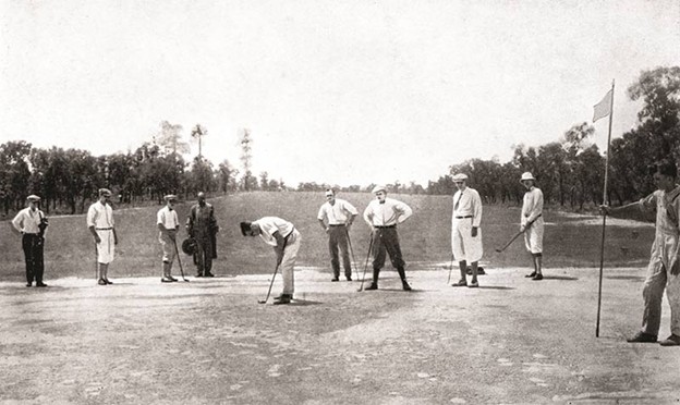 - In the early 1900s, some London gentlemen’s clubs and New York social clubs had “golf rooms” where players hit into nets.